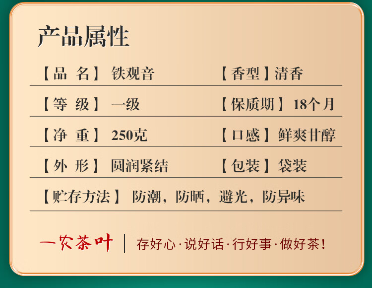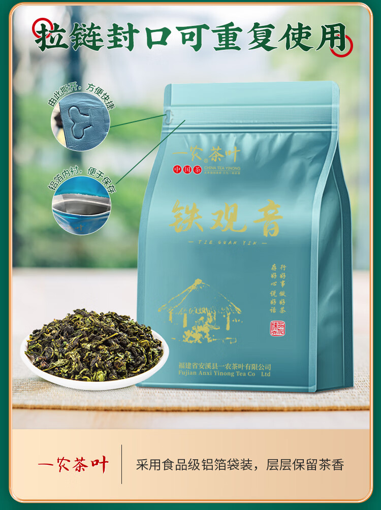 一农 茶叶一级清香型铁观音乌龙茶粒粒香袋装250g 福建茗茶