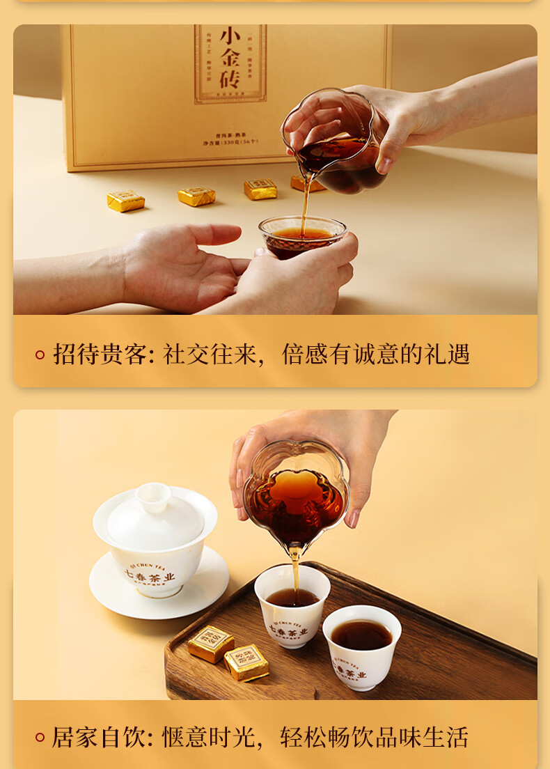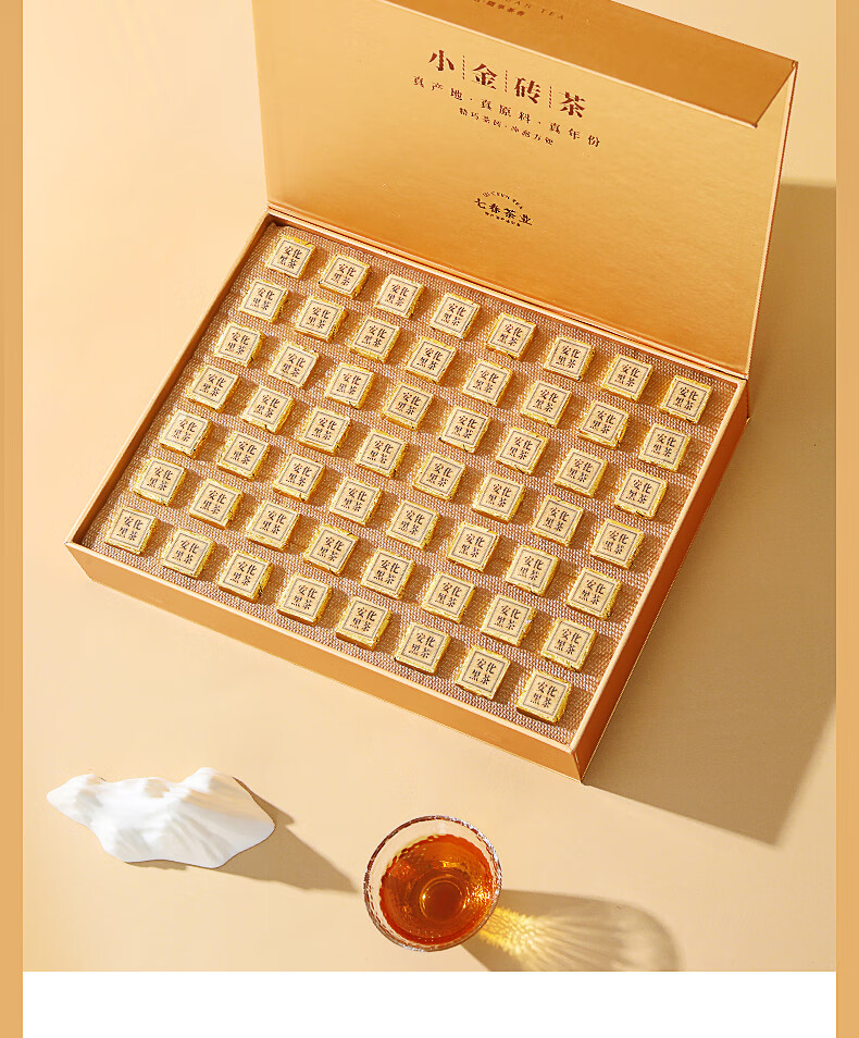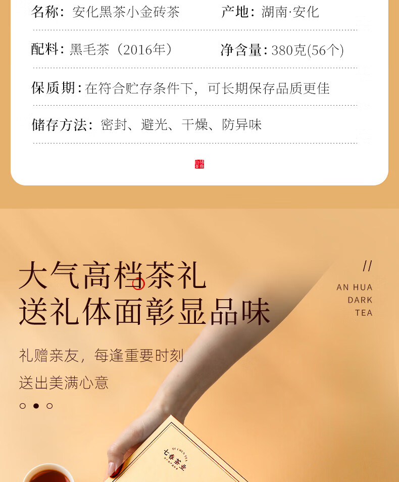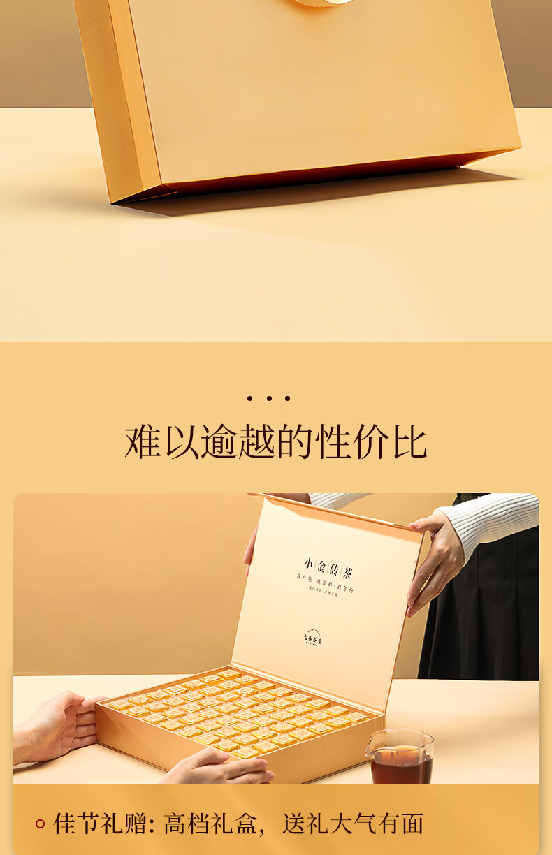 七春安化黑茶熟茶金砖高档礼盒金花茯砖茶7年陈黑砖茯茶380g节日送礼