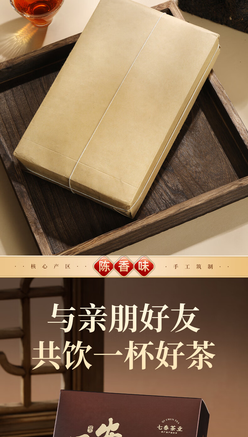 七春安化黑茶1000g赠茶刀11年陈黑茶熟茶金花茯砖茶叶节日礼盒
