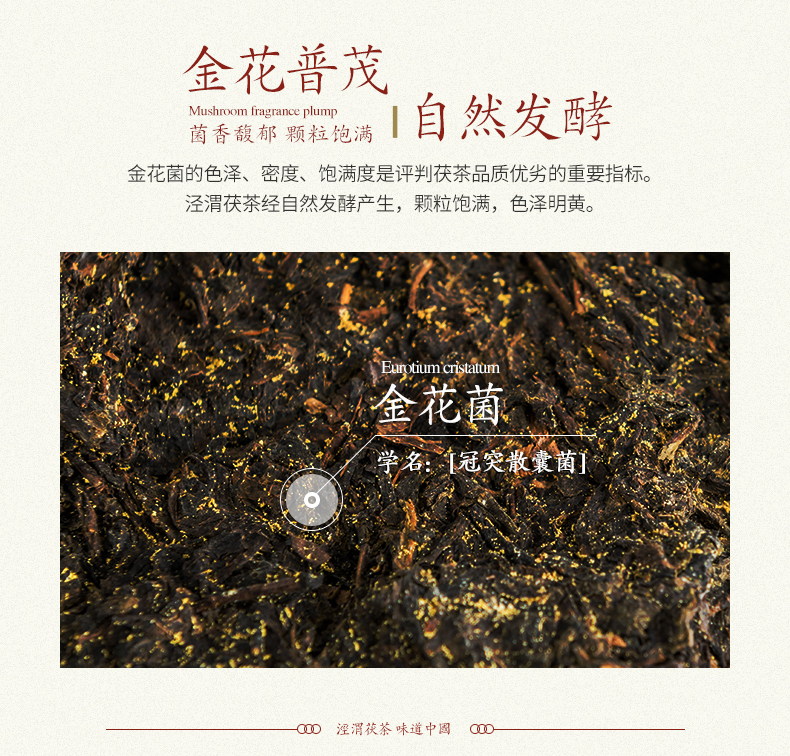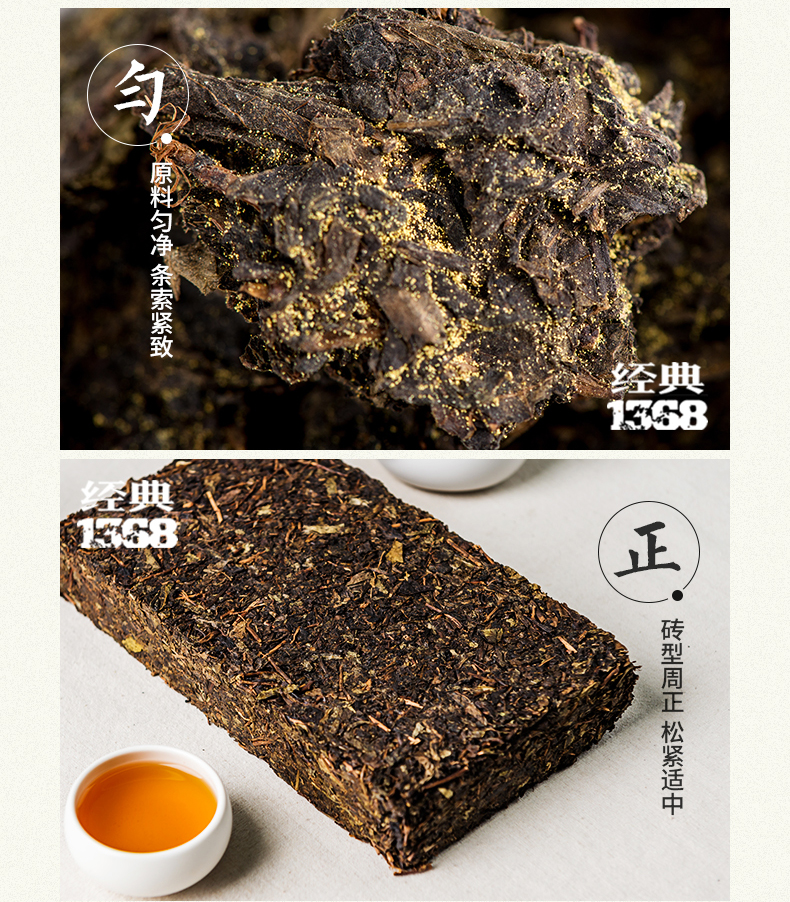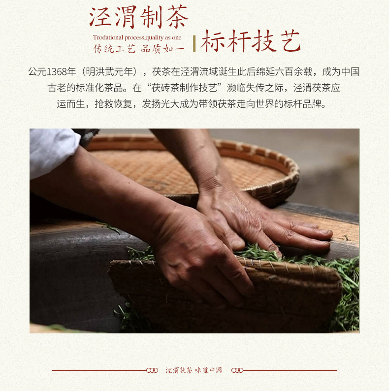 产品名称 : 泾渭茯茶 黑茶 茶叶 咸阳茯茶 陕西特产 金花茯砖茶 经典1368 900g纸包装