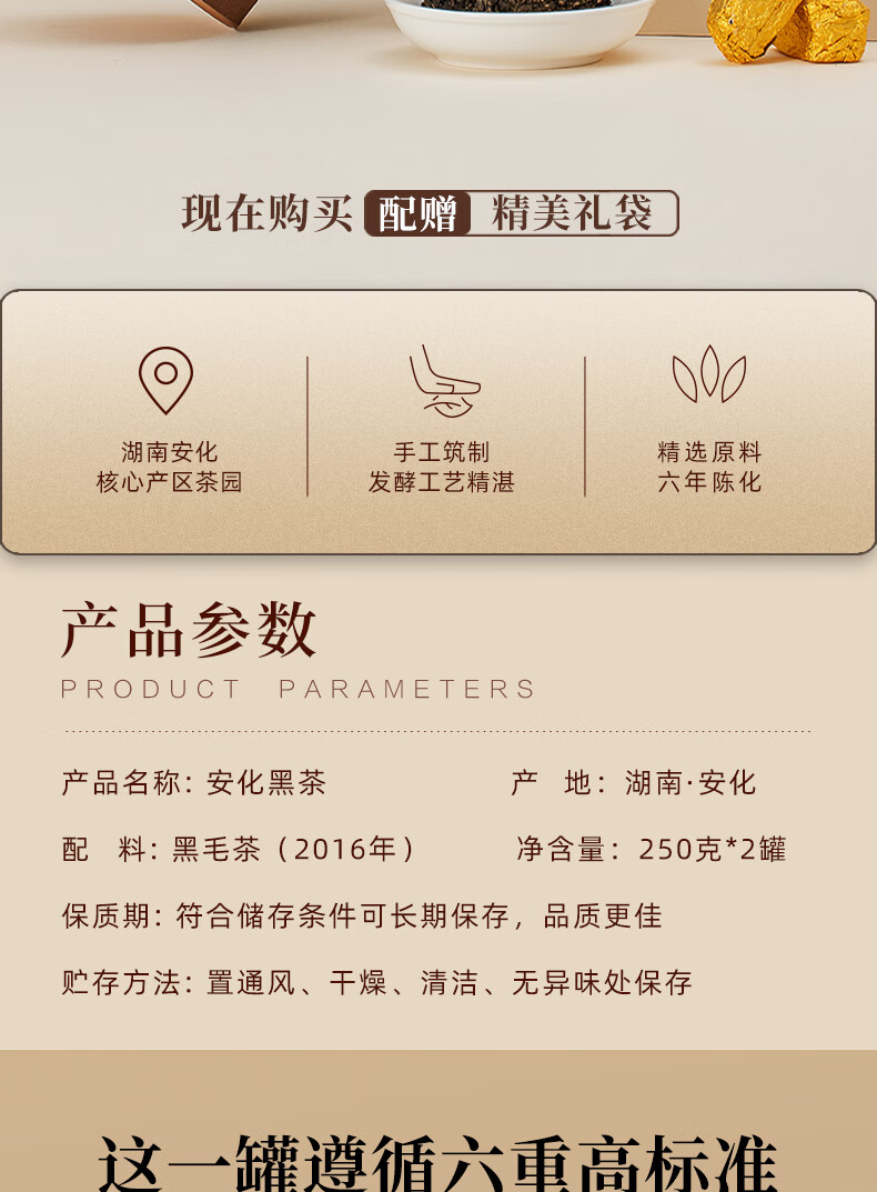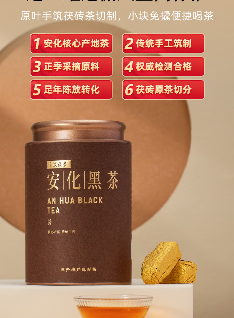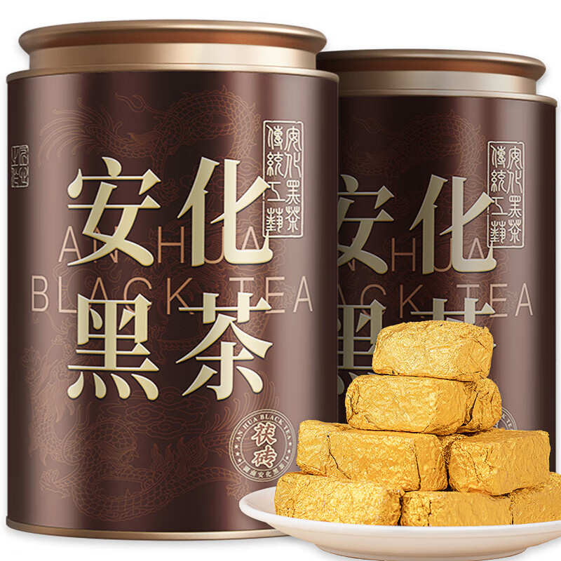 七春茶叶安化黑茶茯砖茶金花茯茶罐装500g湖南手筑黑茶砖茶熟茶送长辈