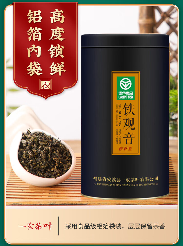 一农乌龙茶 特级浓香铁观音250g 黑罐装福建茗茶 办公茶
