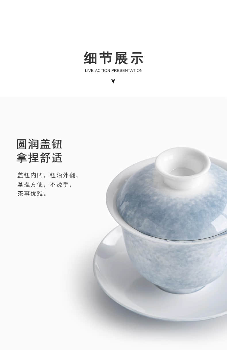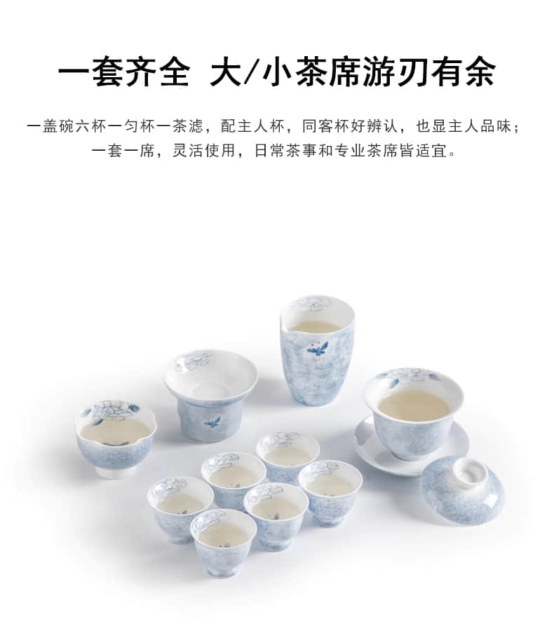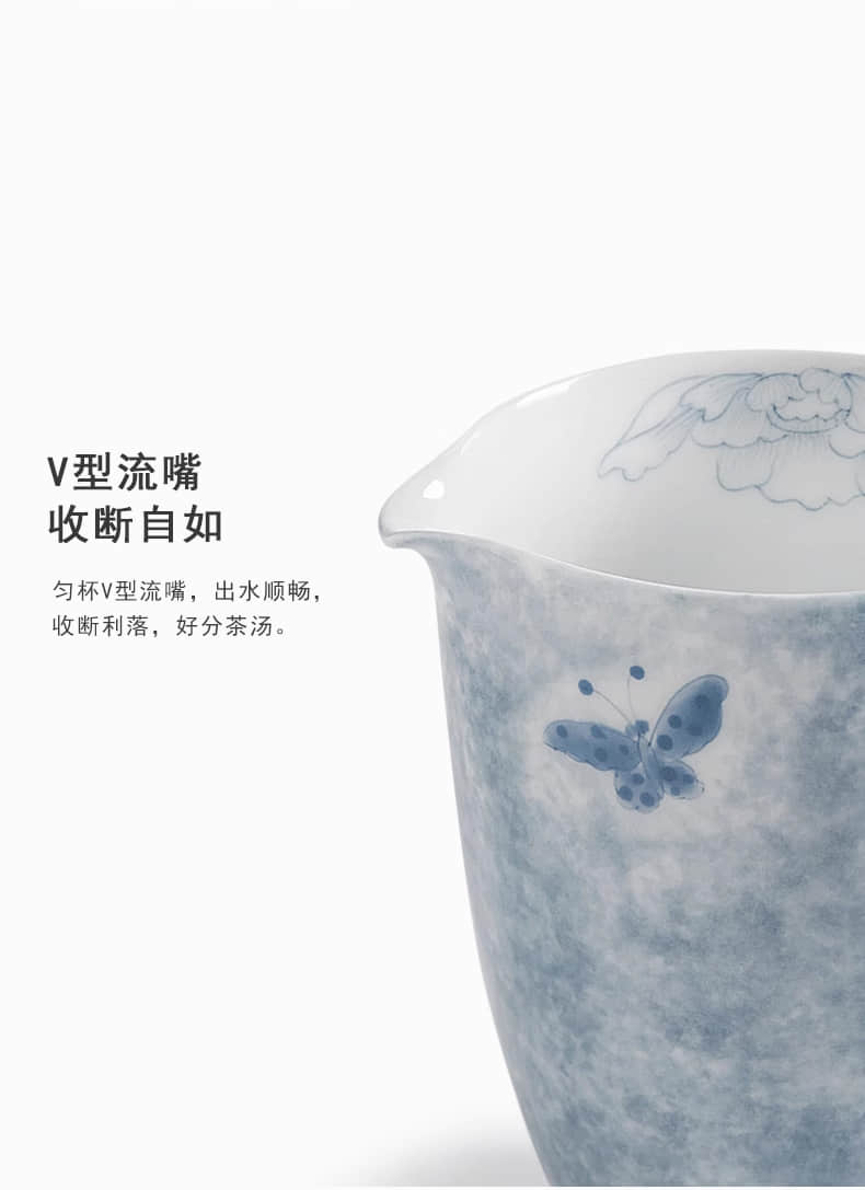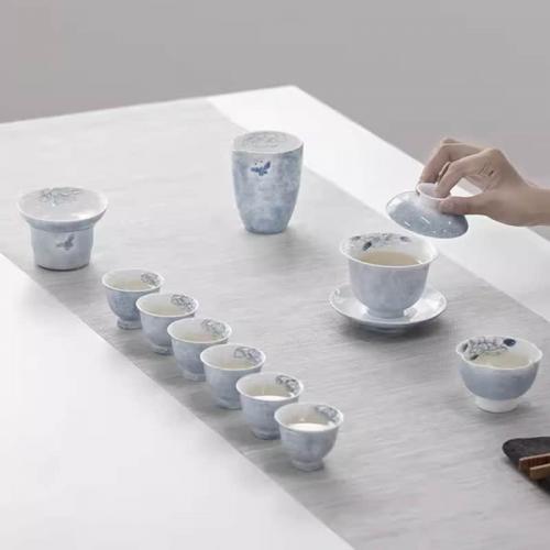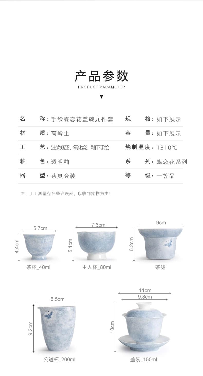 叁旬手绘蝶恋花功夫茶具套装家用盖碗陶瓷泡茶轻奢高档茶艺礼盒装