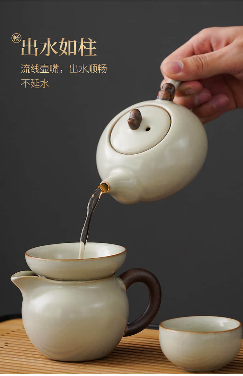 首页 > 茶具 > 陶瓷 茶具 > 初伍竹制茶盘茶具套装家用小型沥水茶台汝窑功夫茶壶茶杯轻奢高档套餐
