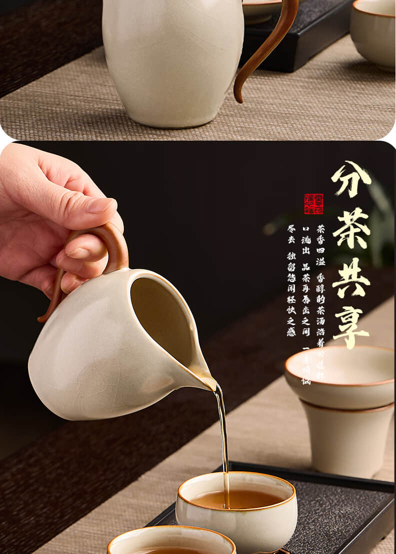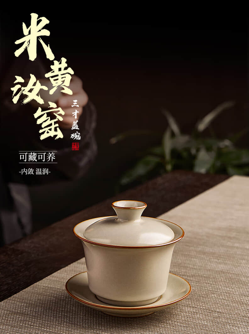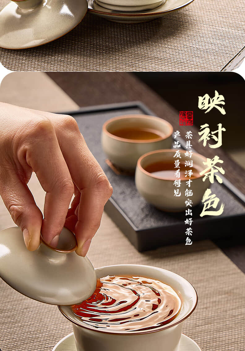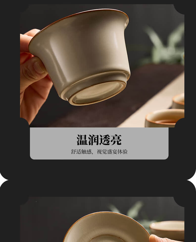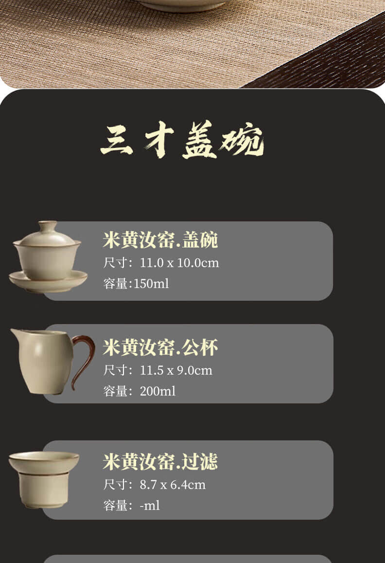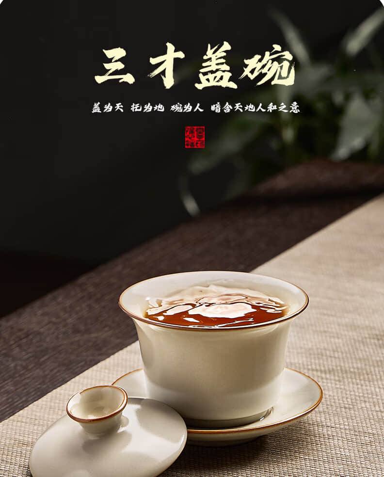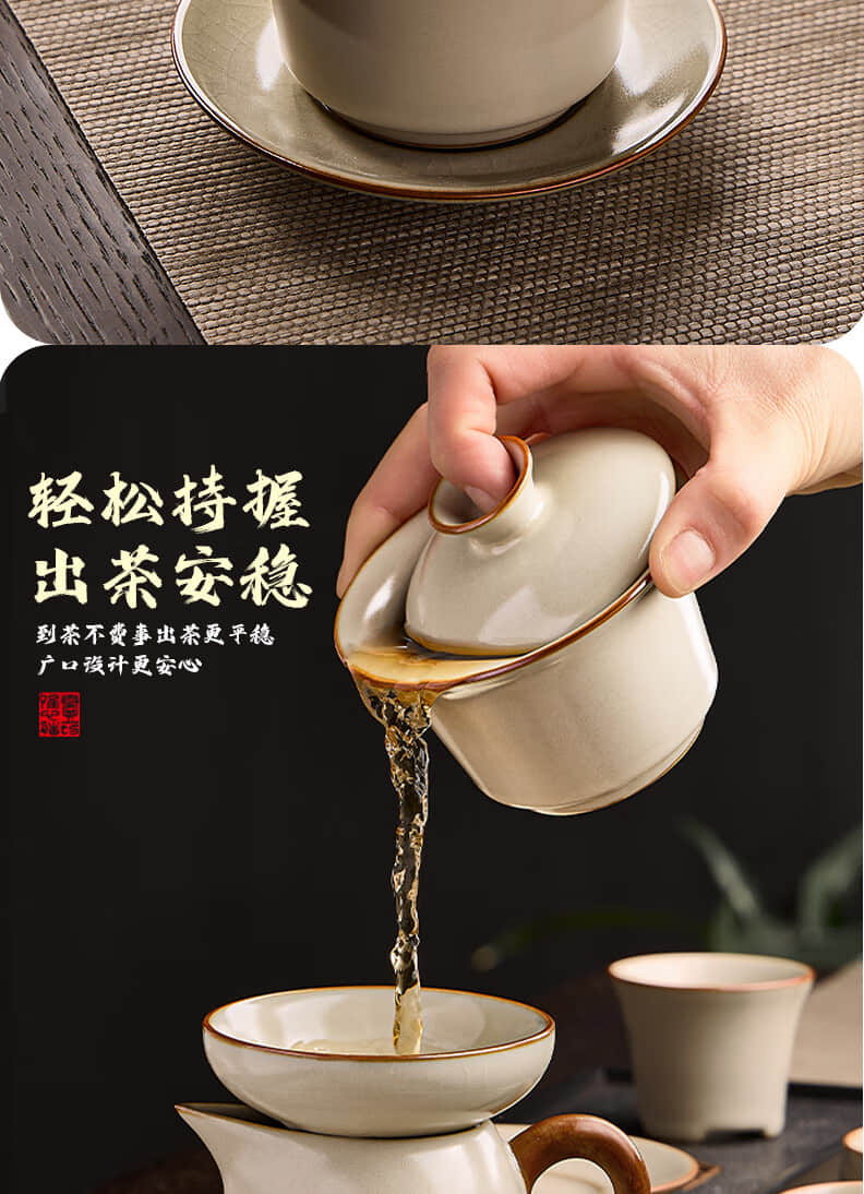 八千行汝窑三才盖碗公道杯茶漏陶瓷茶具三件套装功夫泡茶碗喝茶杯一人用