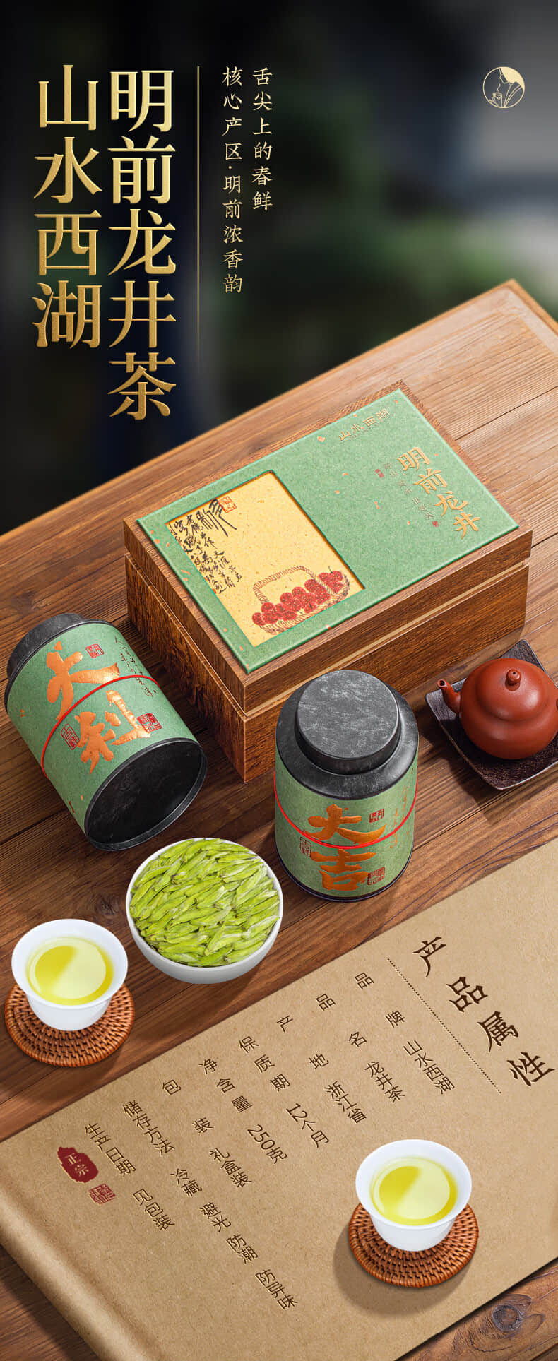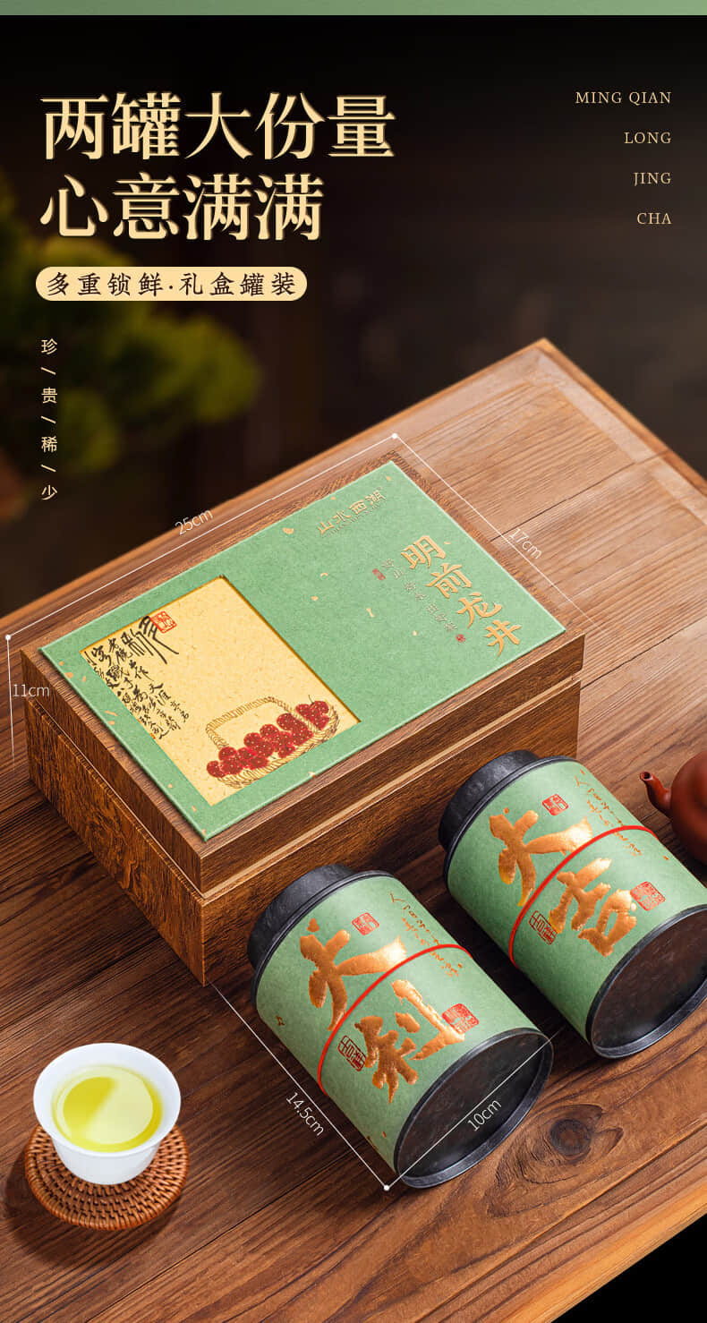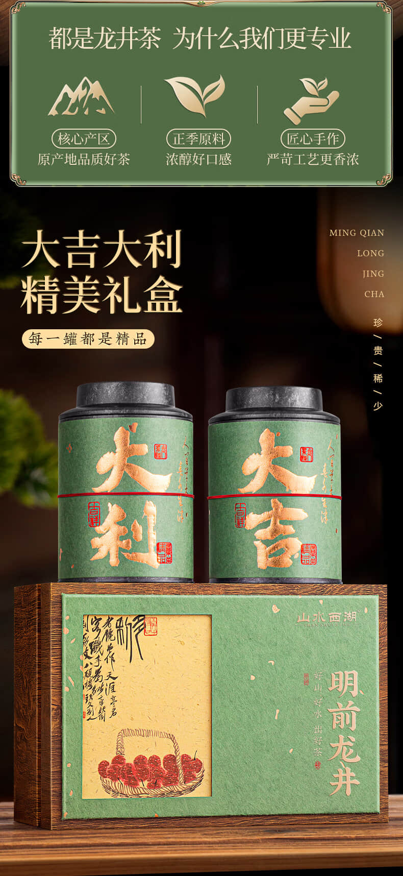 山水西湖龙井茶特级250g2024新茶明前茶叶豆香耐泡型礼盒装绿茶自己喝送礼