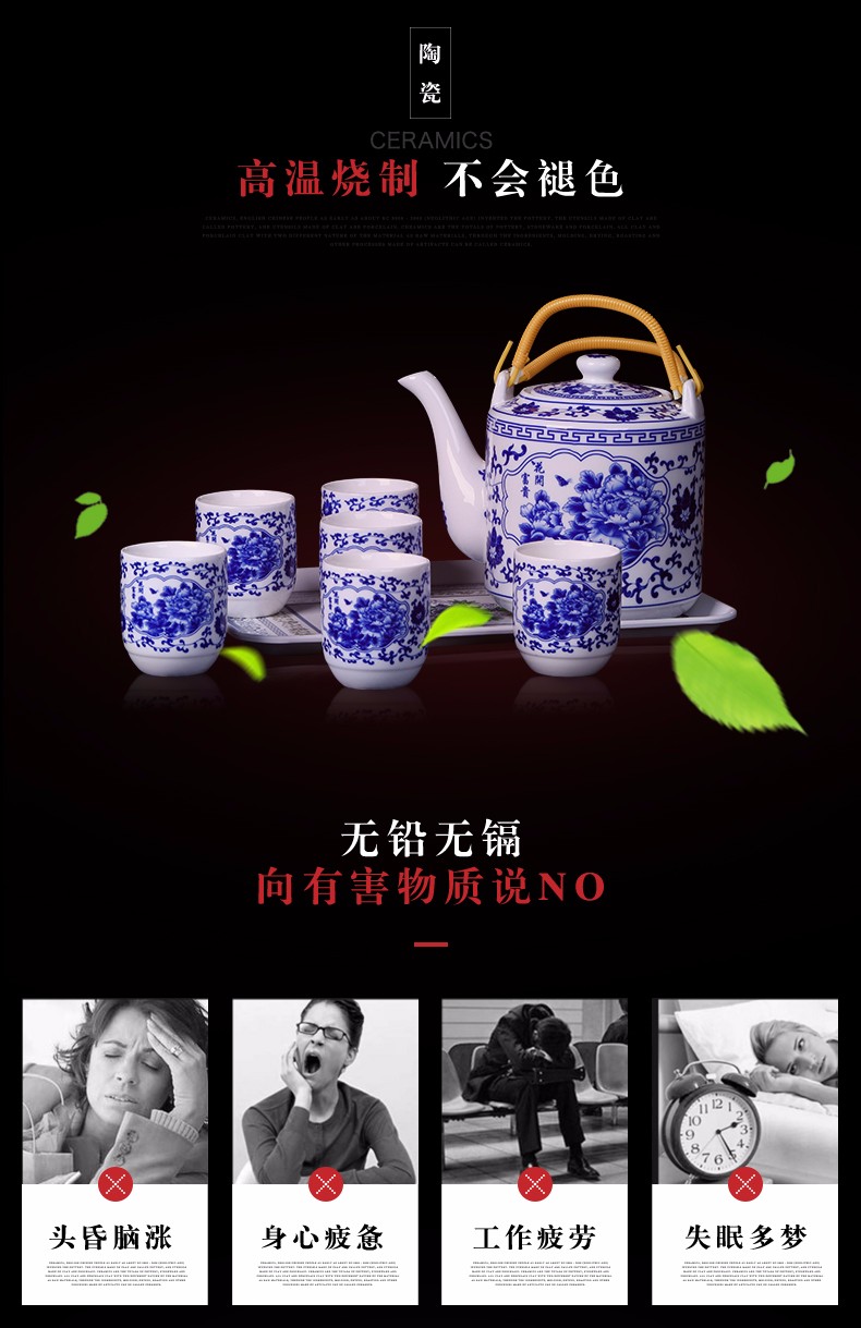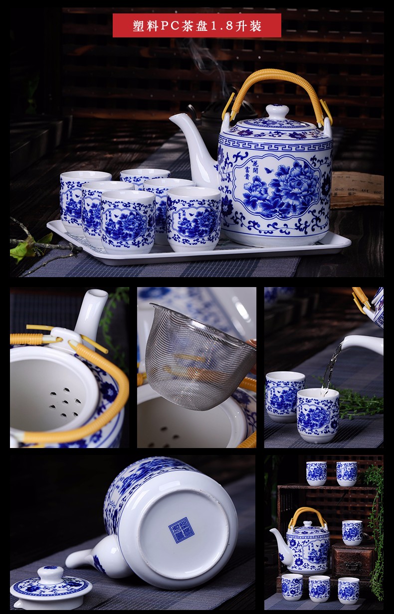 景德镇陶瓷家用青花整套功夫茶具套装凉水提梁泡茶壶茶杯茶盘