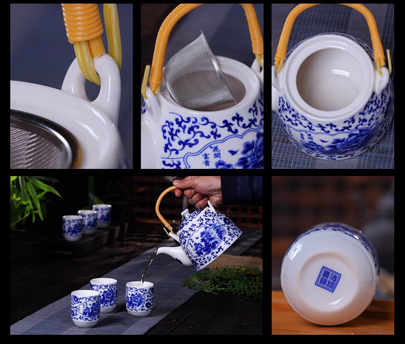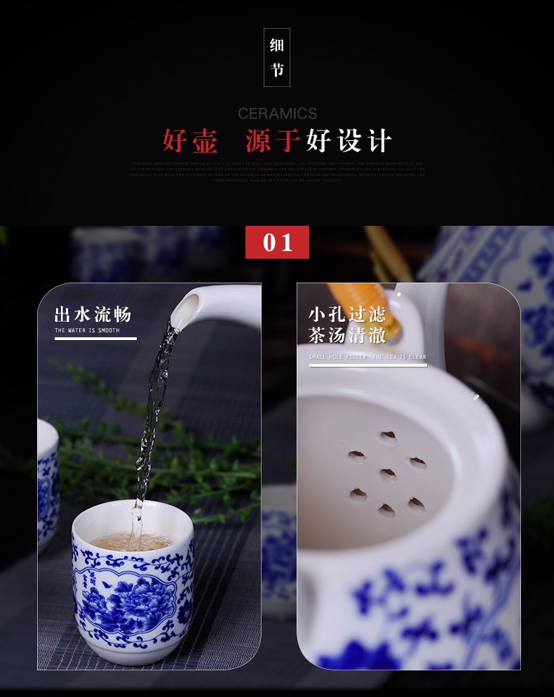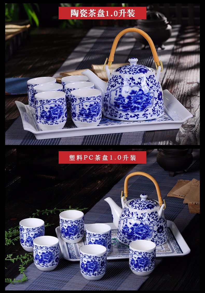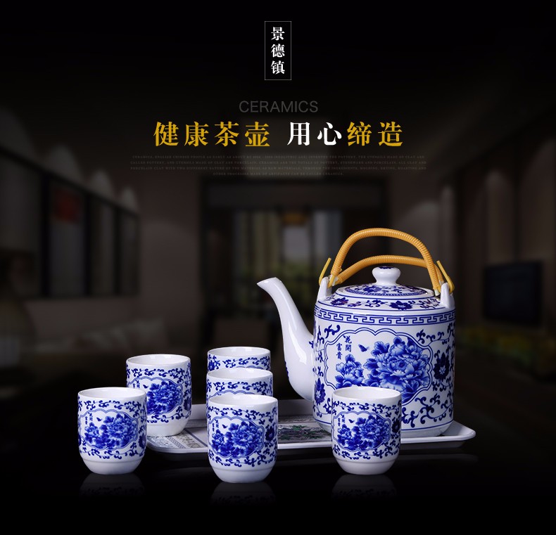 特价景德镇陶瓷家用青花整套功夫茶具套装凉水提梁泡茶壶茶杯茶盘