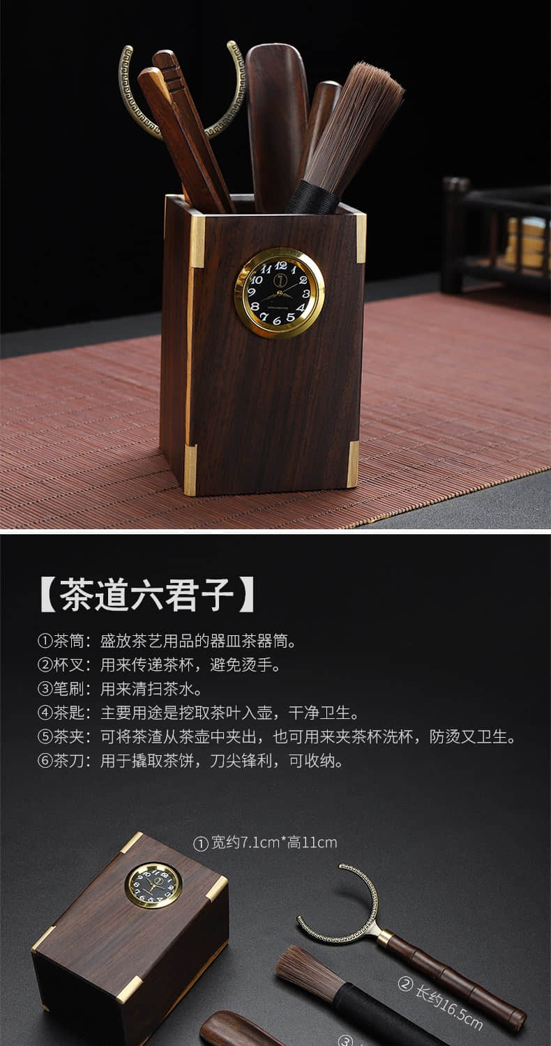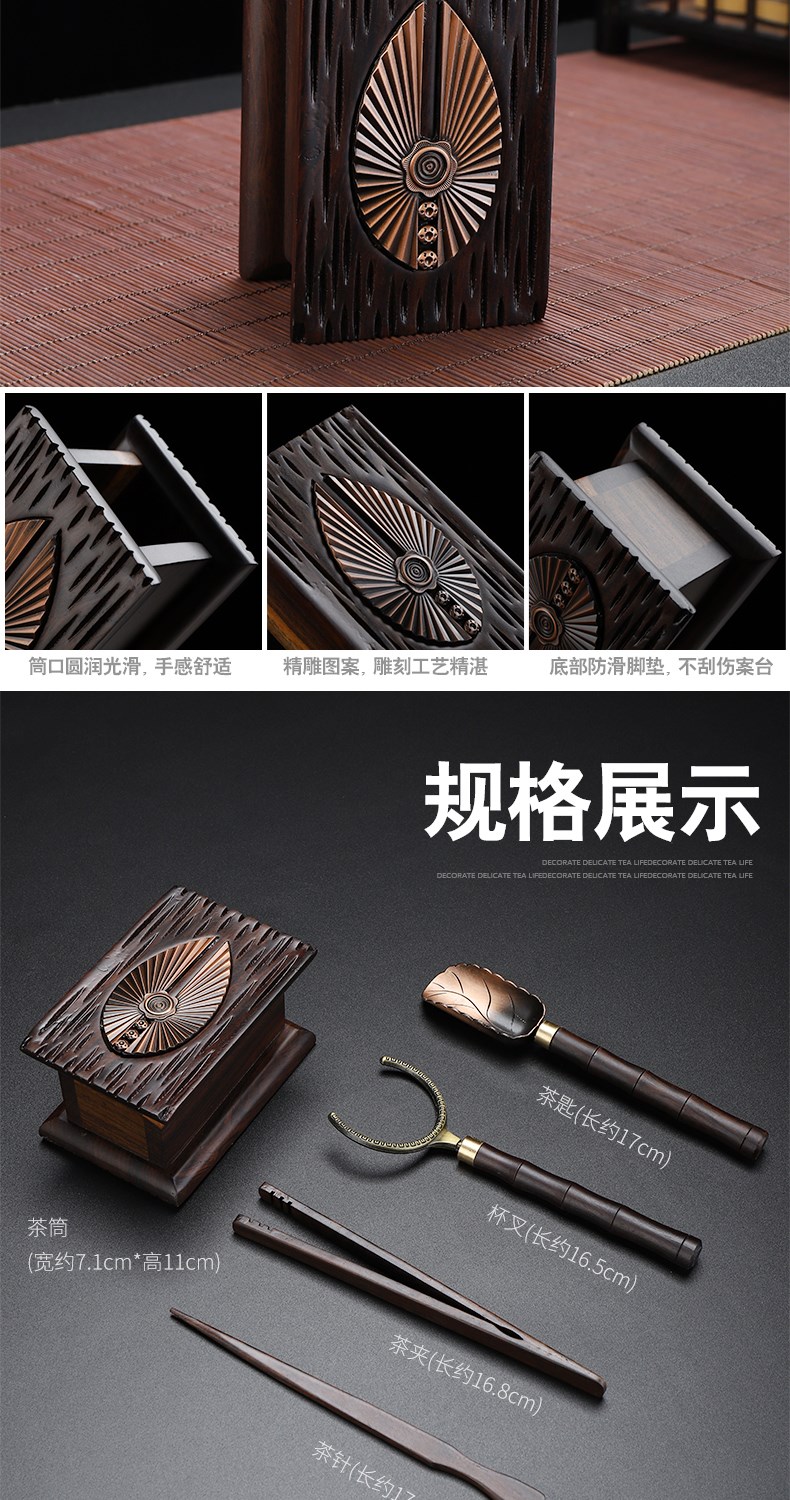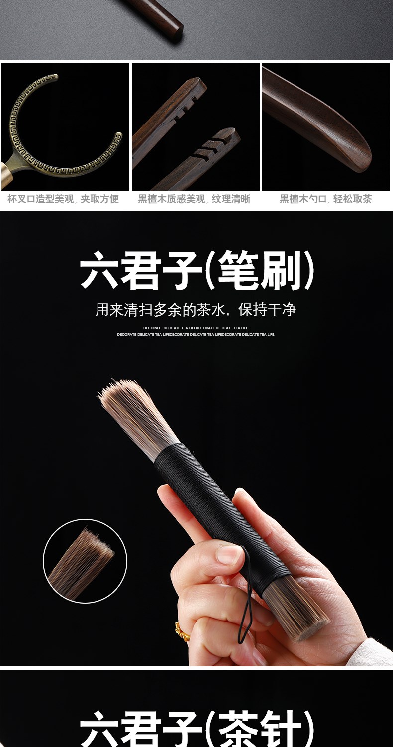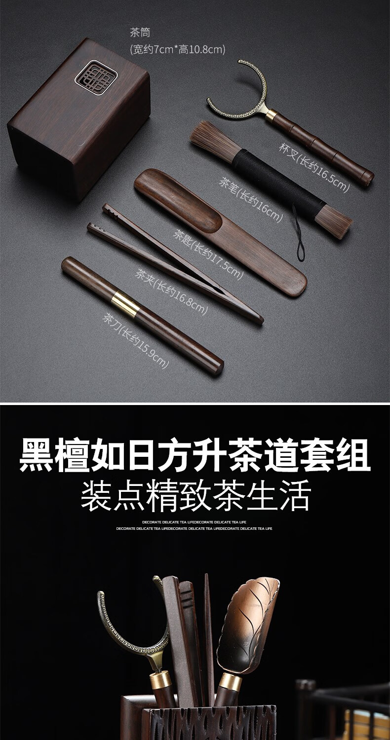 茶具配件实木茶道六君子茶夹功夫茶具竹制黑檀木组合套装