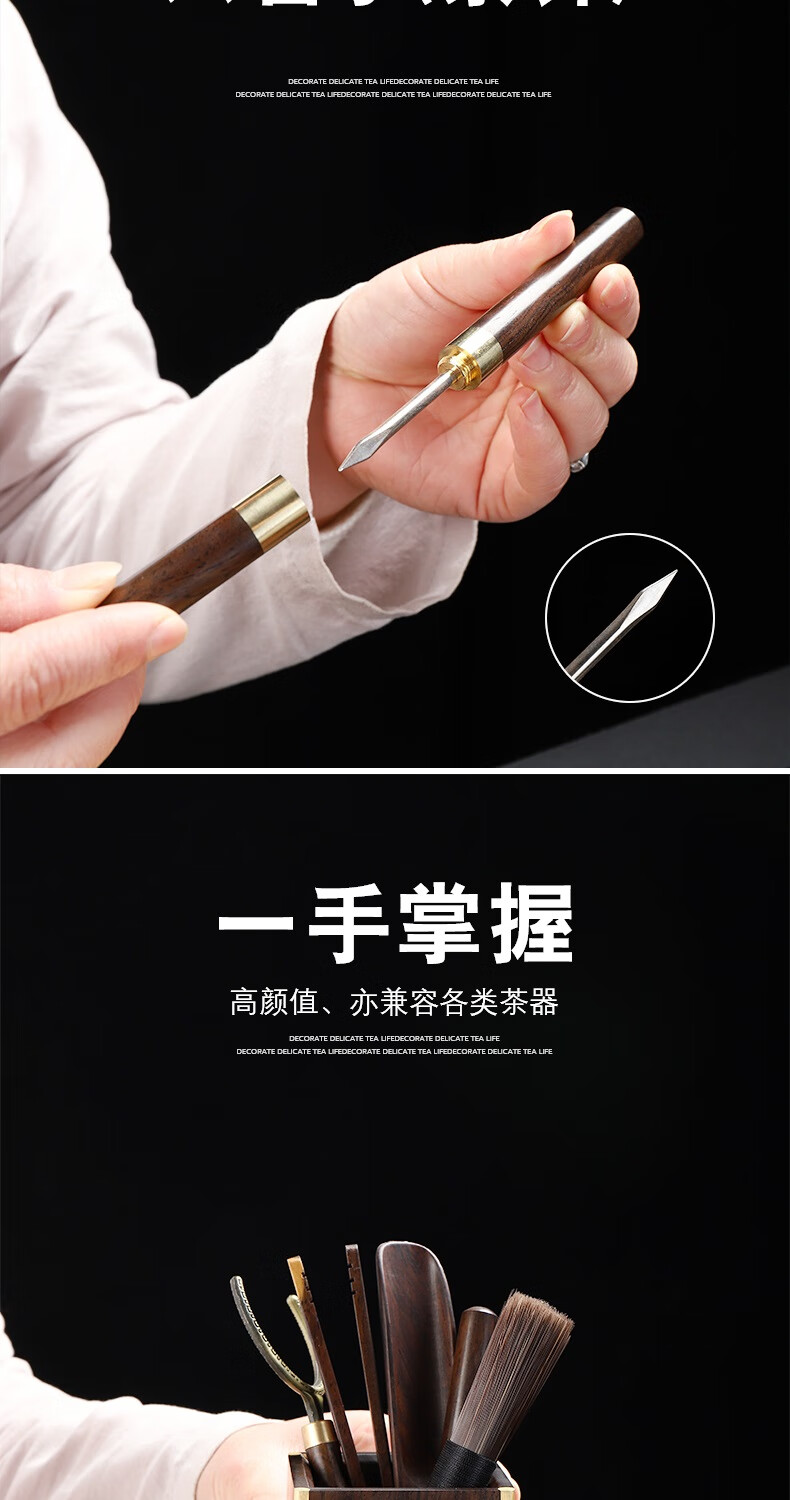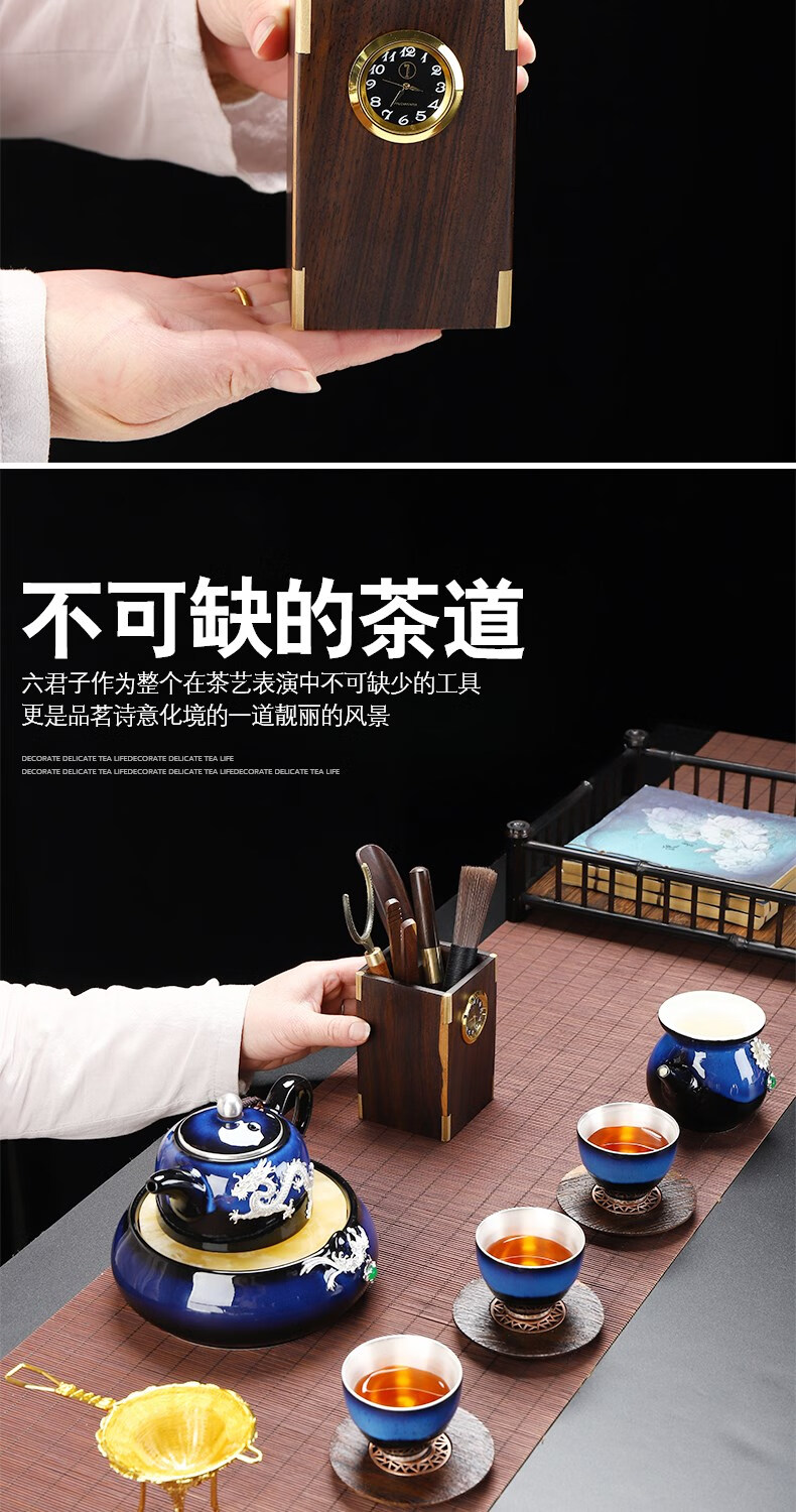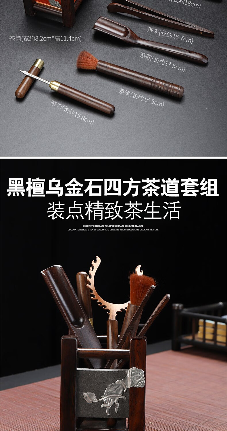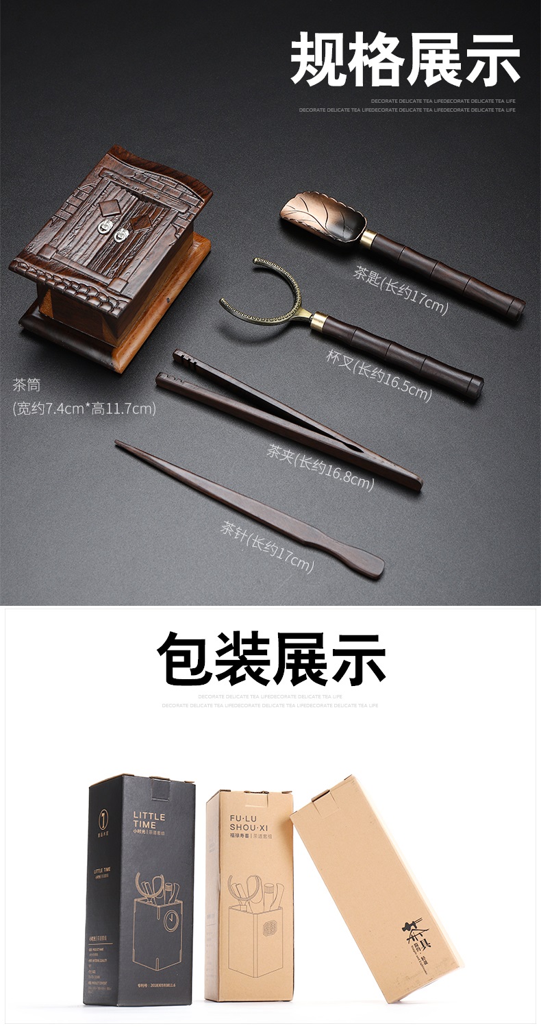茶具配件实木茶道六君子茶夹功夫茶具竹制黑檀木组合套装