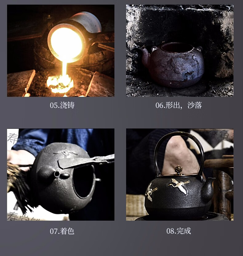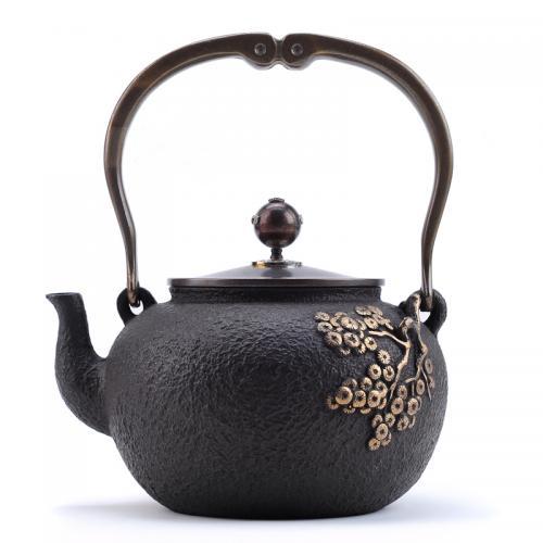 日本铁壶纯手工铸铁壶 描金电磁炉烧水壶铁茶壶泡茶壶 煮水茶具