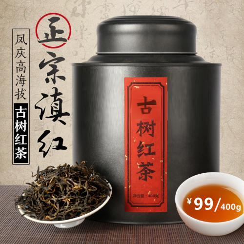 云南滇红 凤庆高海拔古树红茶 极佳耐泡度 铁罐400g装