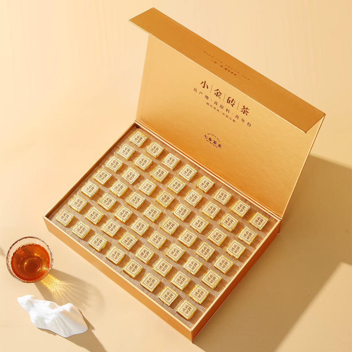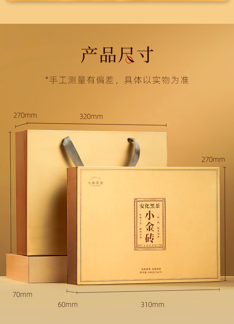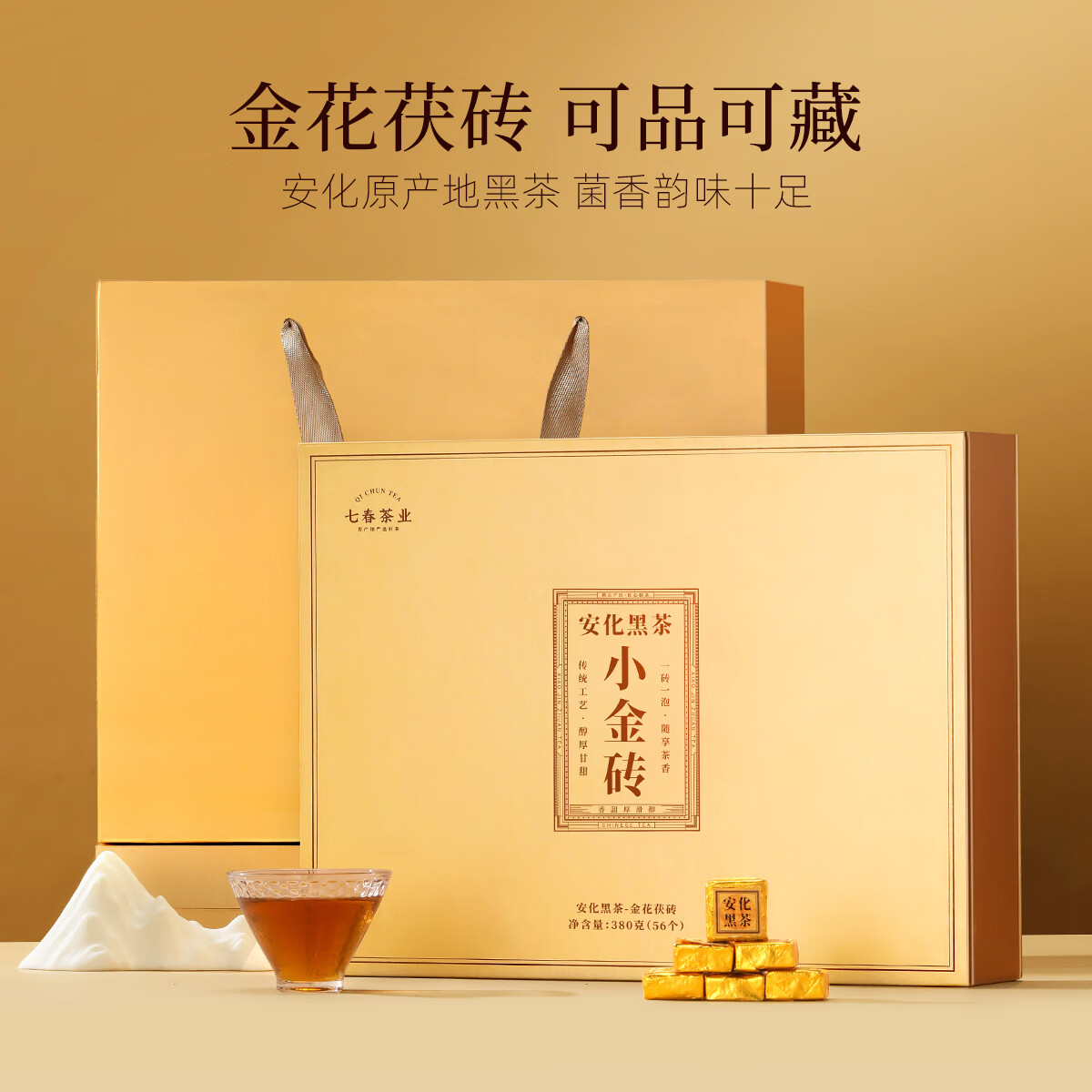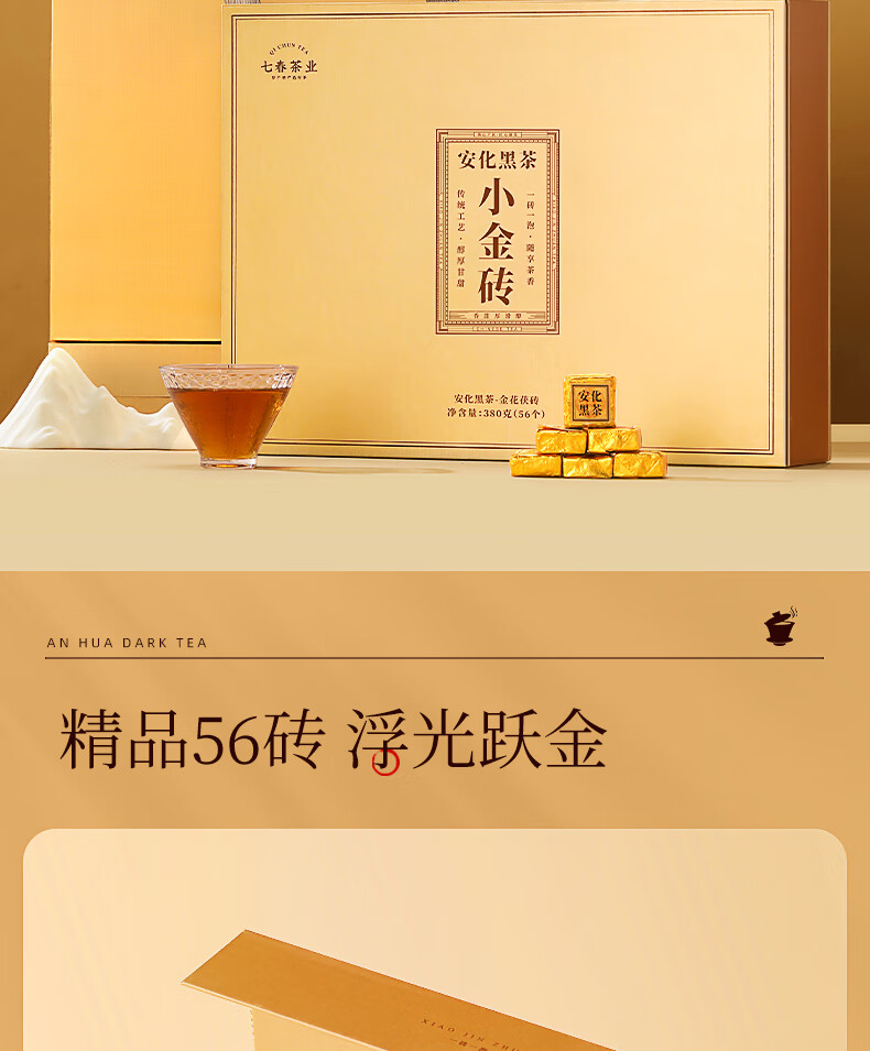 七春安化黑茶熟茶金砖高档礼盒金花茯砖茶7年陈黑砖茯茶380g节日送礼