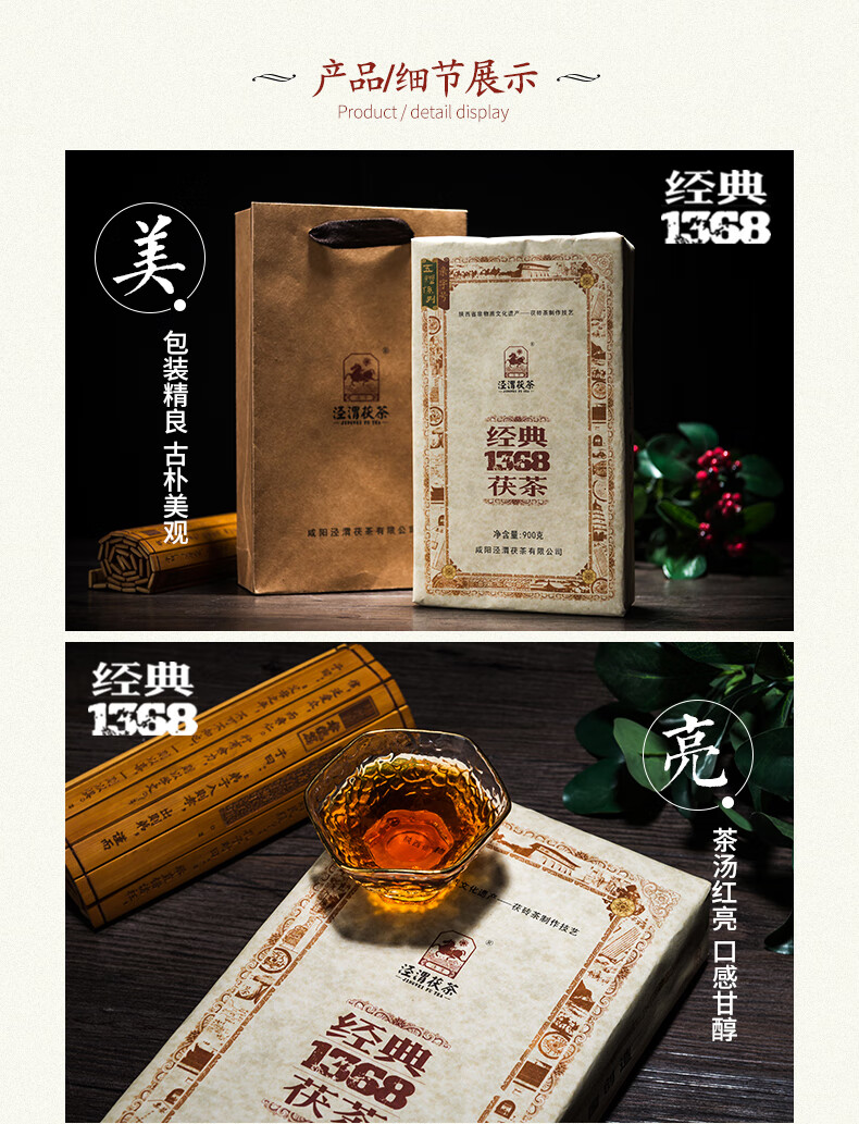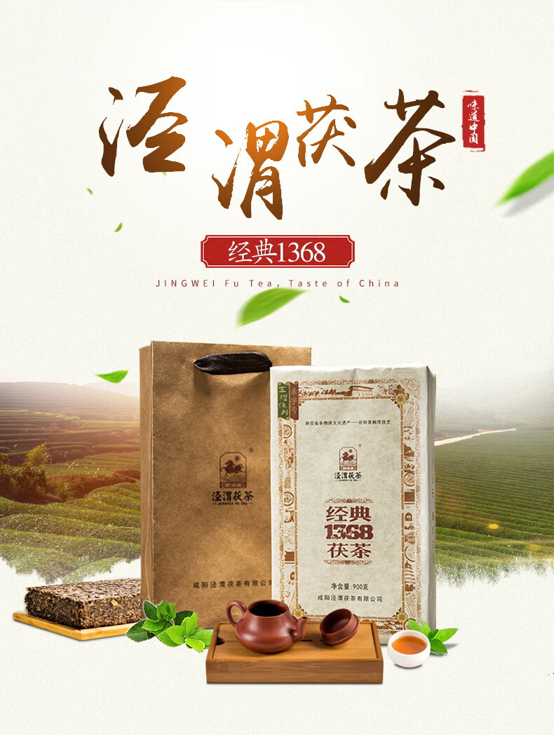 产品名称 : 泾渭茯茶 黑茶 茶叶 咸阳茯茶 陕西特产 金花茯砖茶 经典1368 900g纸包装