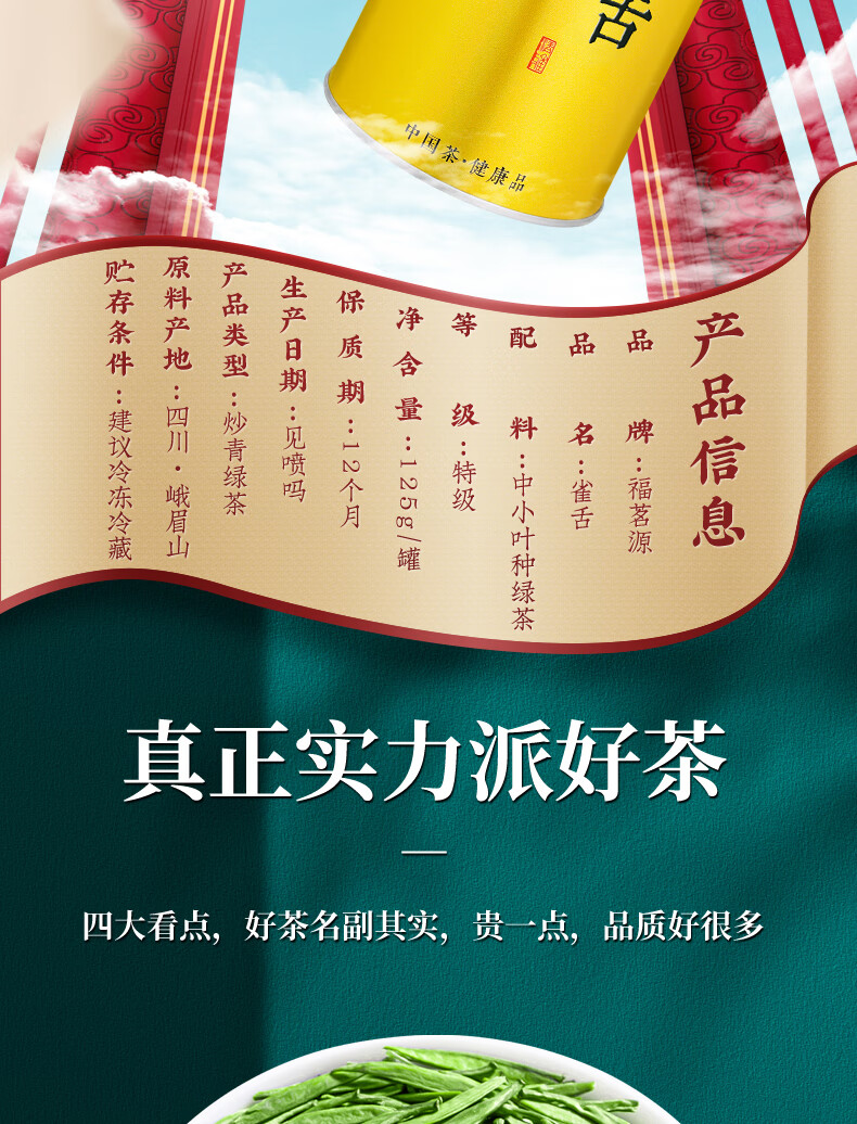 福茗源绿茶 雀舌茶叶 浓香特级250g2024明前新茶叶送礼盒春茶嫩芽