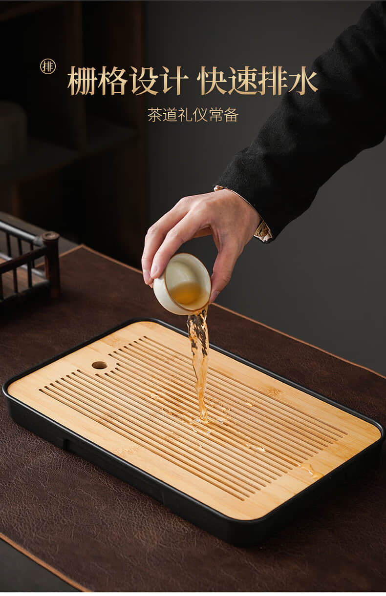 初伍竹制茶盘茶具套装家用小型沥水茶台汝窑功夫茶壶茶杯轻奢高档套餐