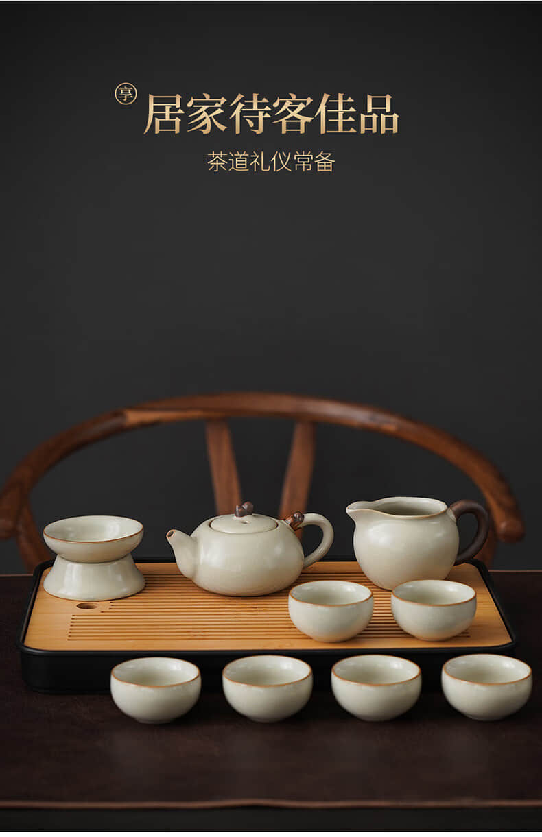 首页 > 茶具 > 陶瓷 茶具 > 初伍竹制茶盘茶具套装家用小型沥水茶台汝窑功夫茶壶茶杯轻奢高档套餐