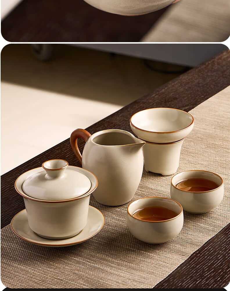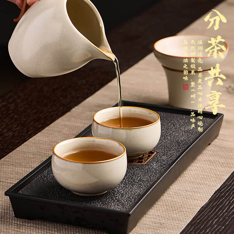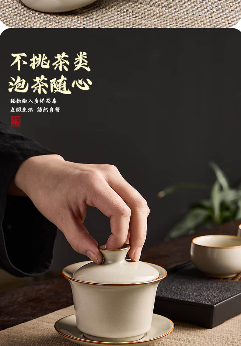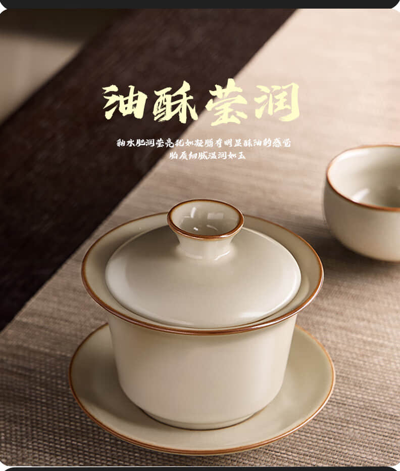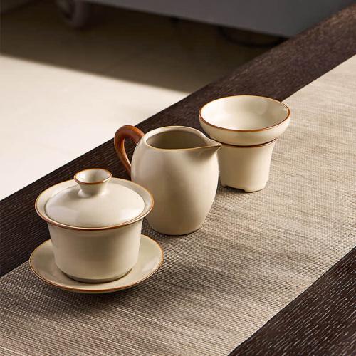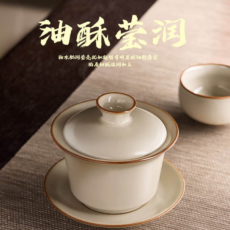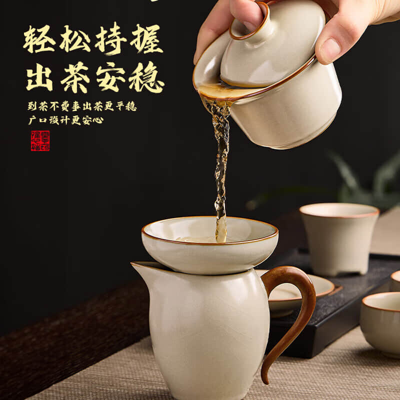 八千行汝窑三才盖碗公道杯茶漏陶瓷茶具三件套装功夫泡茶碗喝茶杯一人用