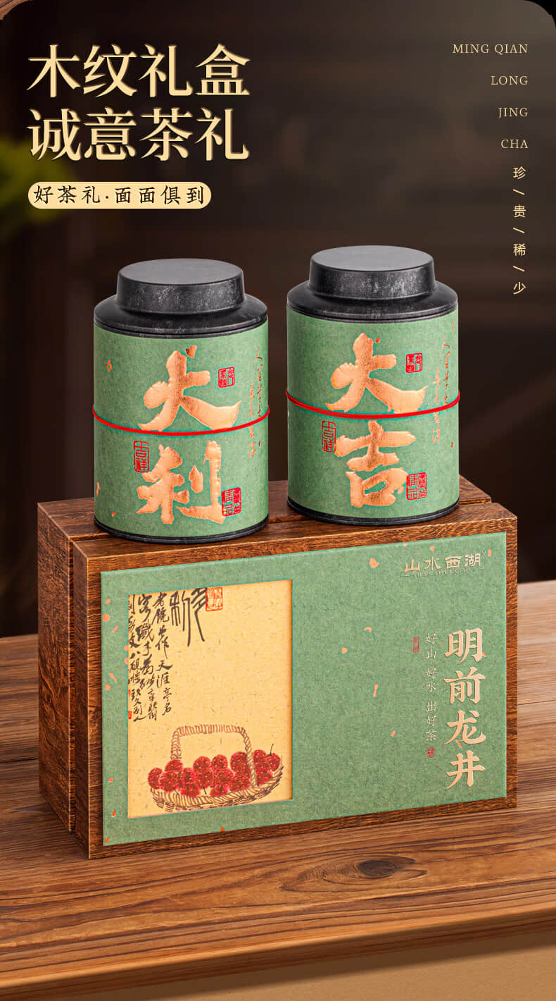 山水西湖龙井茶特级250g2024新茶明前茶叶豆香耐泡型礼盒装绿茶自己喝送礼