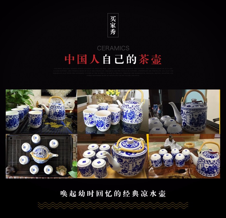 特价景德镇陶瓷家用青花整套功夫茶具套装凉水提梁泡茶壶茶杯茶盘