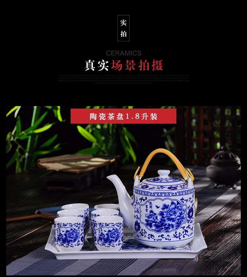 景德镇陶瓷家用青花整套功夫茶具套装凉水提梁泡茶壶茶杯茶盘