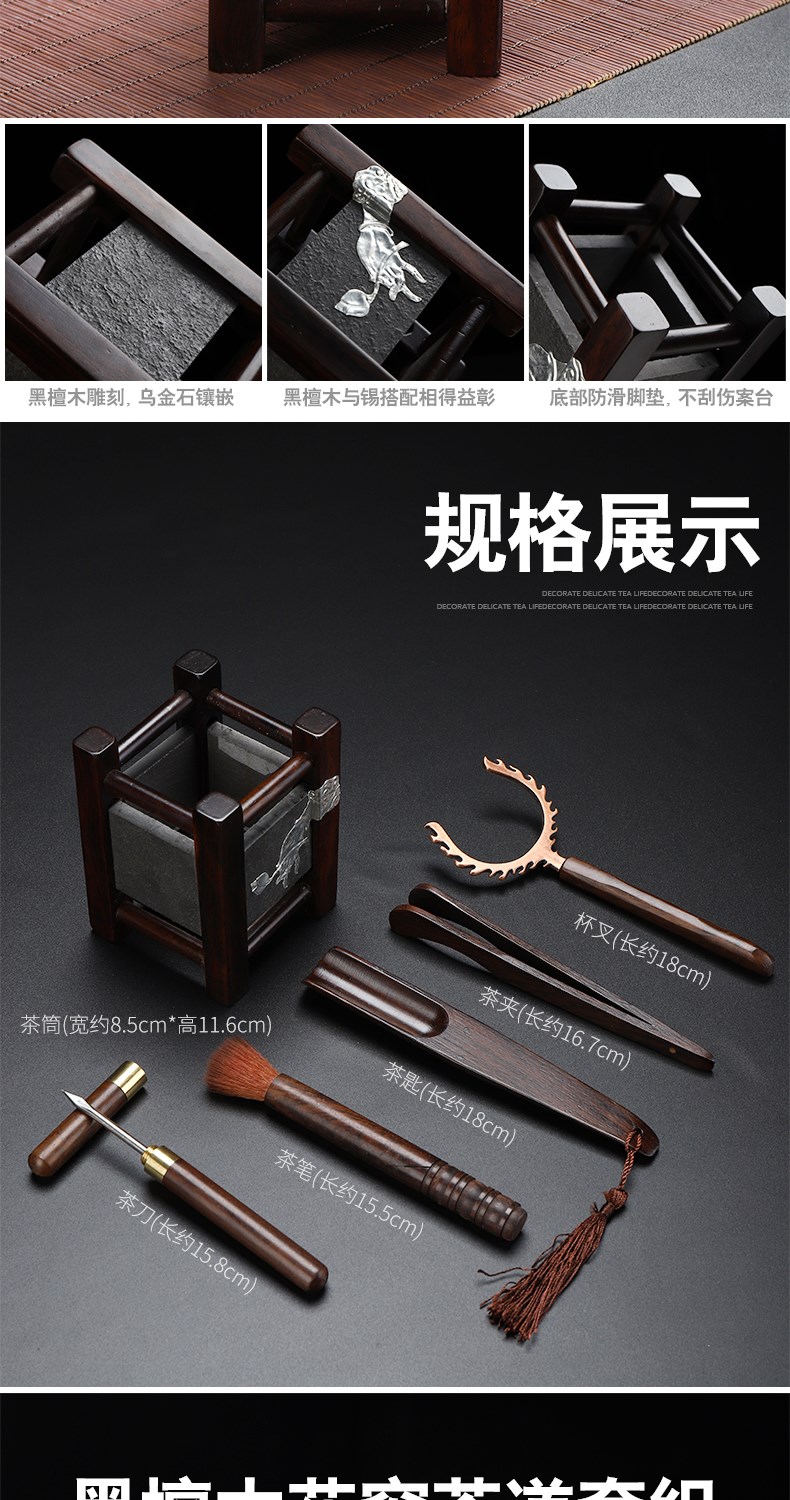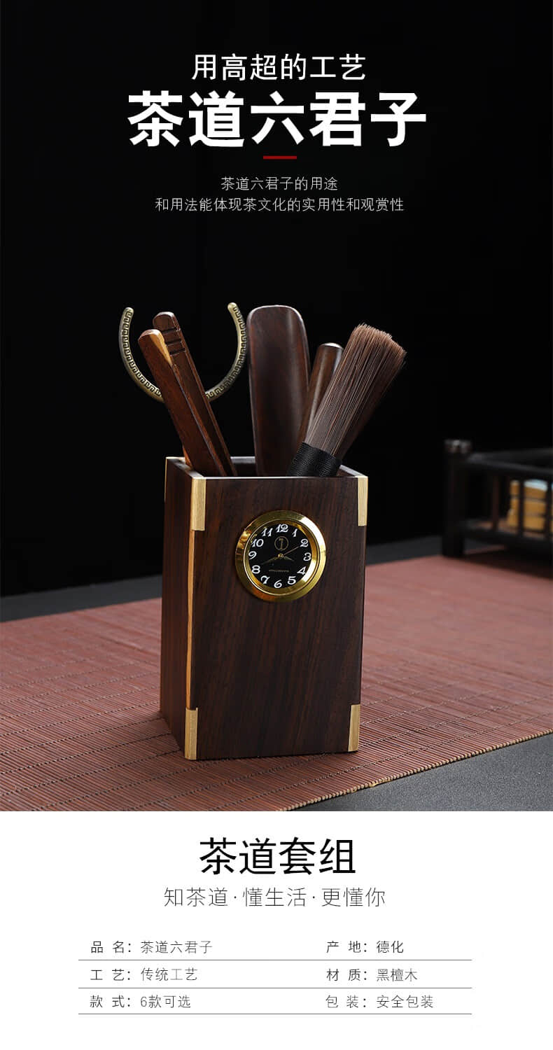 茶具配件实木茶道六君子茶夹功夫茶具竹制黑檀木组合套装